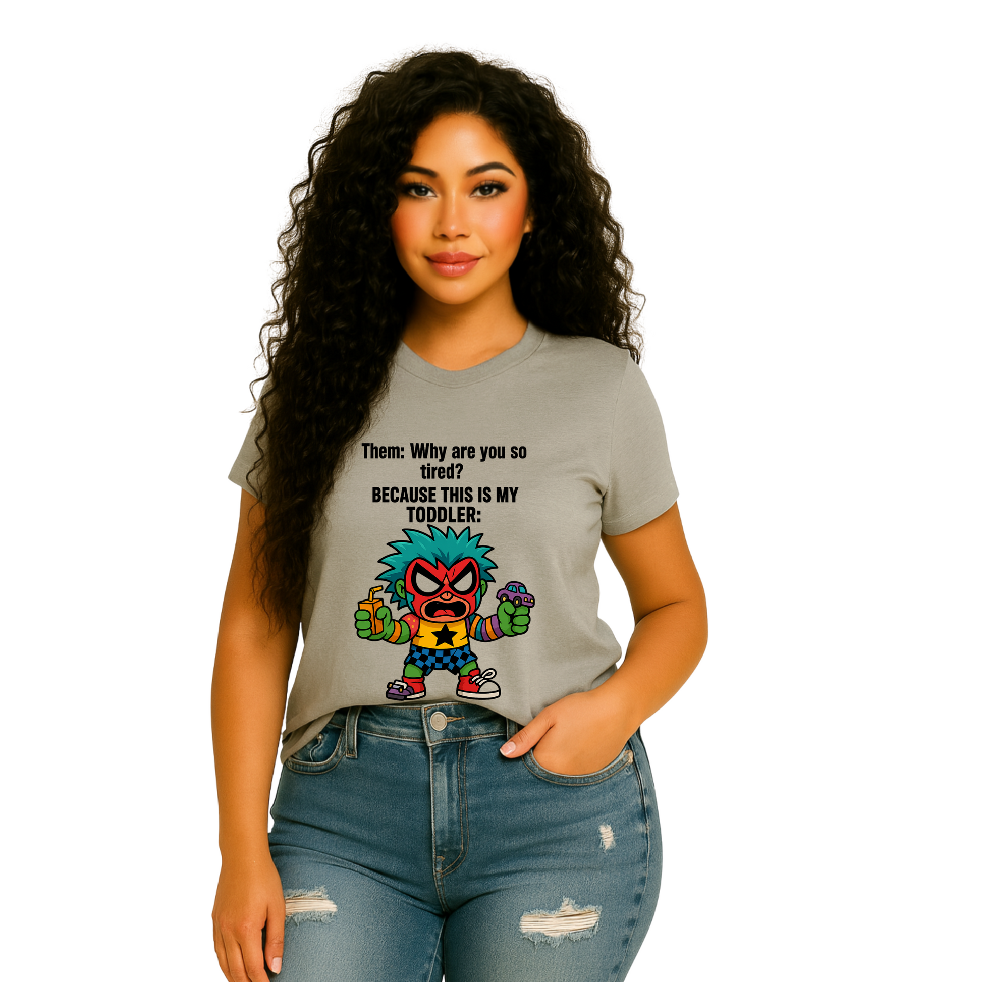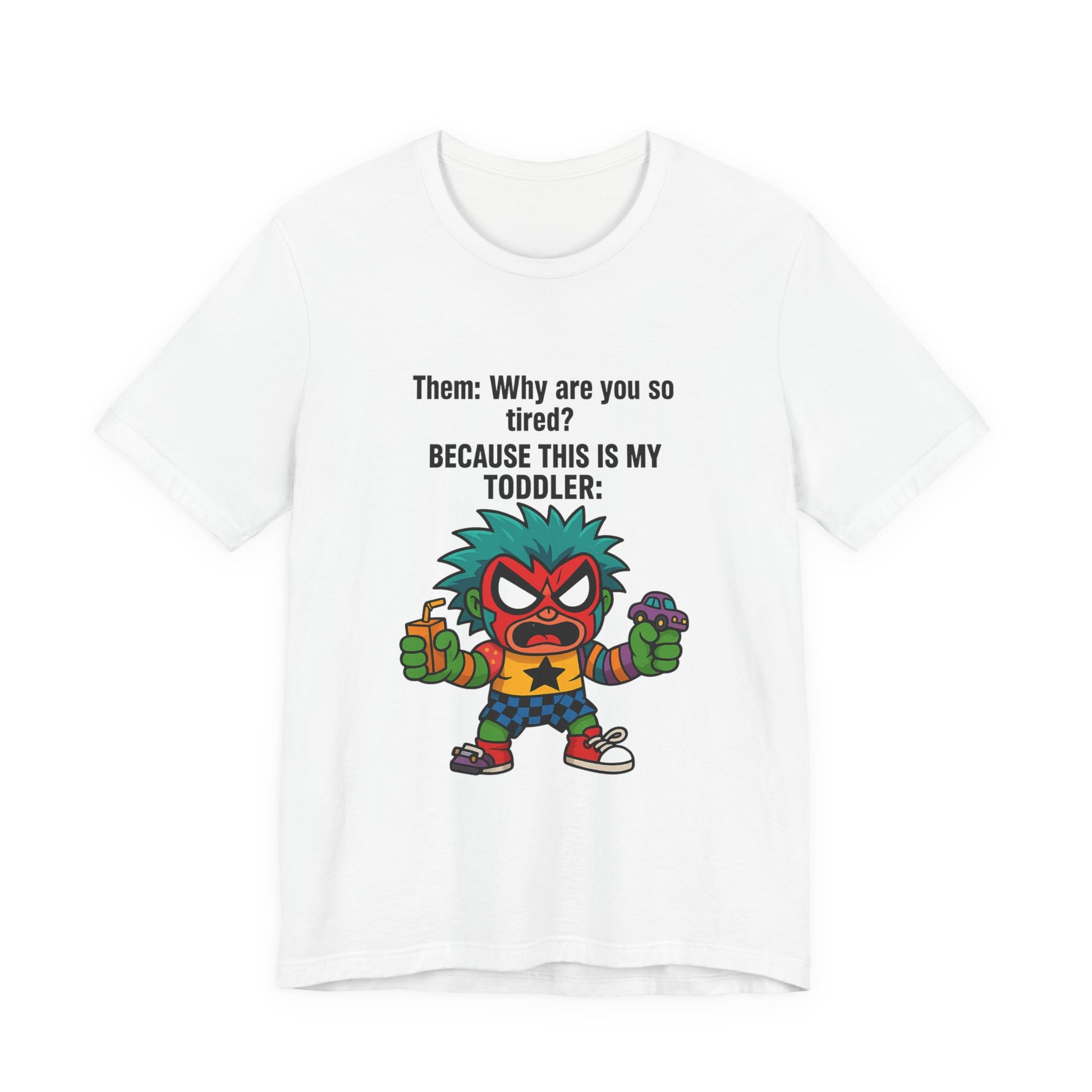 Featuring a bold cartoon toddler mid-meltdown, this shirt perfectly captures the chaos of parenthood with a touch of humor.