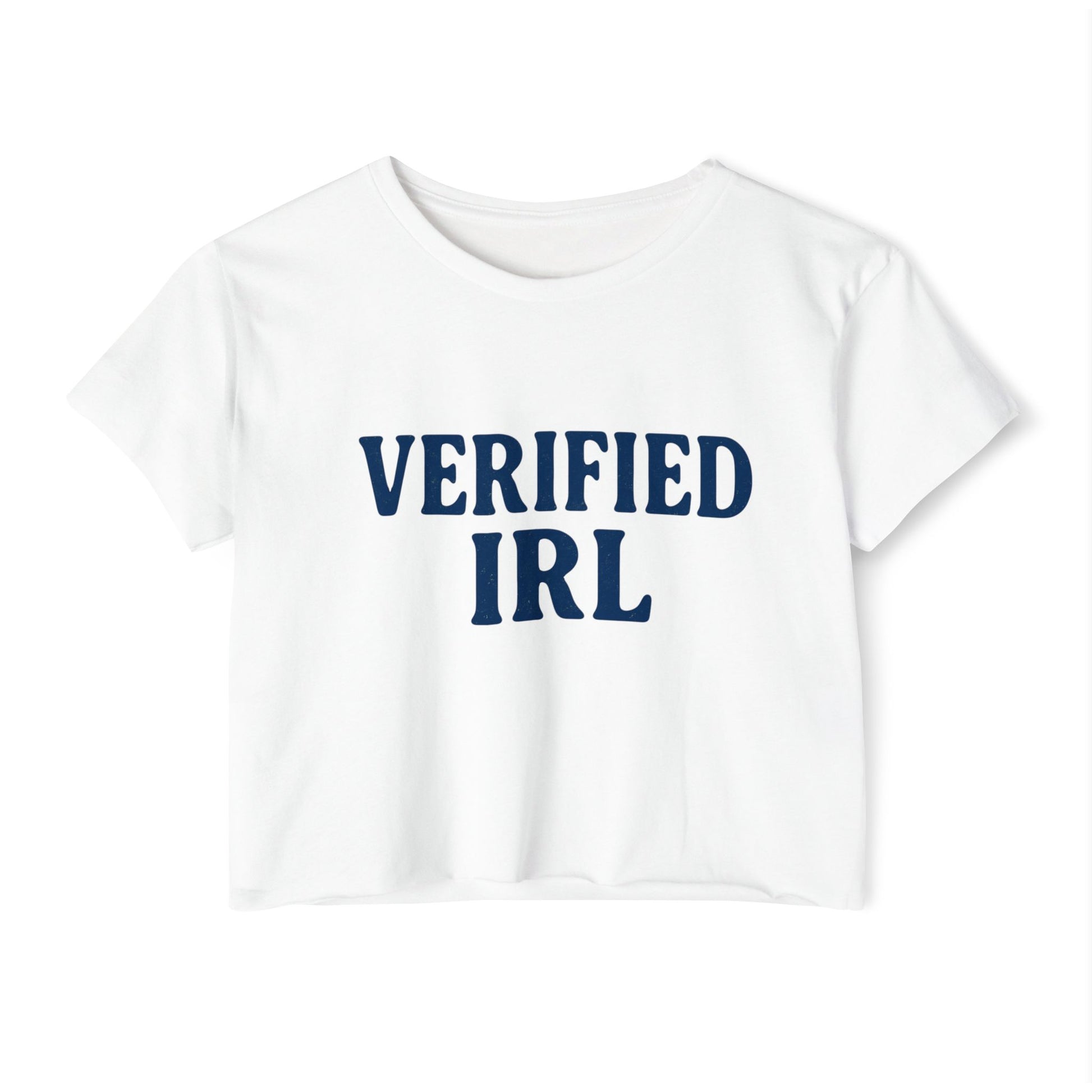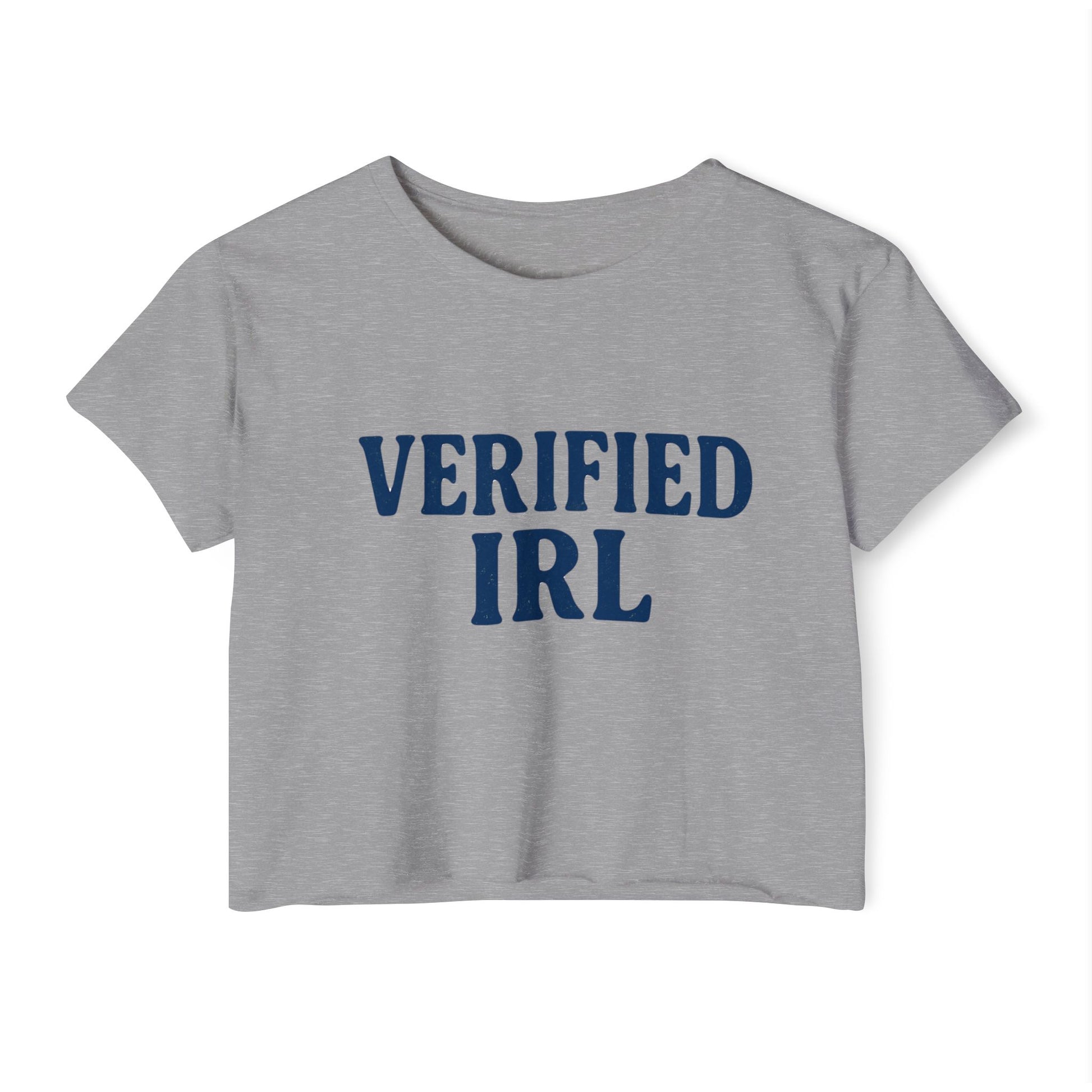 Stay certified in real life. This heather gray cropped tee with bold navy lettering makes a statement without saying a word — casual, confident, and effortlessly stylish. Perfect for pairing with high-waisted jeans or joggers when you want your vibe verified.